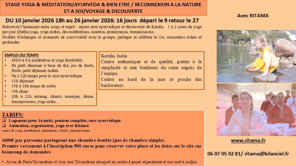 Stage yoga et méditation du 11 au 24 janvier 2026